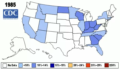 Elhízási tendencia – USA Elhízási tendencia – USA Az elhízottak arányának rohamos növekedése az Egyesült Államokban 1985-2008 között. Egyedül Colorado tartotta viszonylag jól magát. Kategória Egyéb Közzétéve: 2016. 04. 15. 16:55 You must have JavaScript enabled to use this form. Saját név Hozzászólás A szövegformátumokról Egyszerű szöveg A HTML jelölők használata nem megengedett. A webcímek és e-mail címek automatikusan kattintható hivatkozásokká alakulnak. A sorokat és bekezdéseket a rendszer automatikusan felismeri. A mező üresen hagyandó