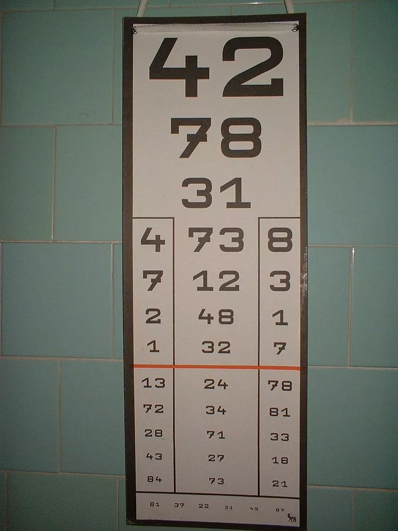 Látásvizsgáló tábla (Snellen tábla variáns, számokkal)