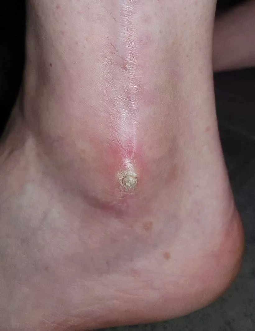 Bokatörés helyreállító műtéte után kialakult sipoly (malleoláris fisztula). Ez egyik végén a külvilágba nyílik, másik vége az ízületi tokot töri át, magával az ízületi folyadéktérrel, esetleg nyáktömlővel is közlekedhet.